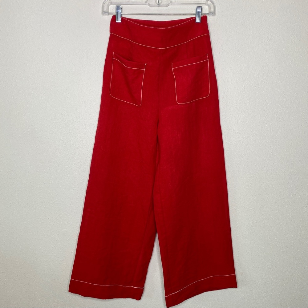Super nice red summer pants with 2 front patch pockets with contrasting white stitching
