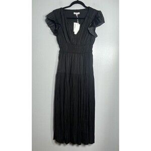 MOON RIVER Plissé Midi Dress Size XS Black NEW Pleated Goddess Party Tuckernuck