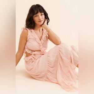 MOON RIVER Ruffle Cutout Shirred Dress Size Medium