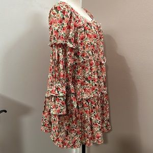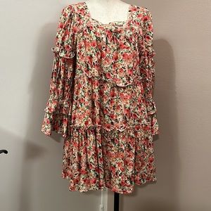 MOON River Puff sleeve Tiered Mini Babydoll Square Neck Dress Floral Bohemian