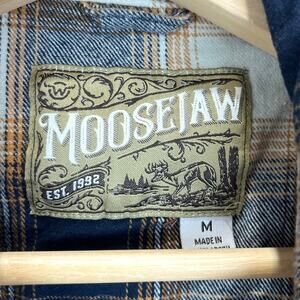 MOOSEJAW Plaid Button Down Shirt Organic Cotton Flannel Blue Tan Size M