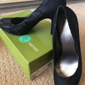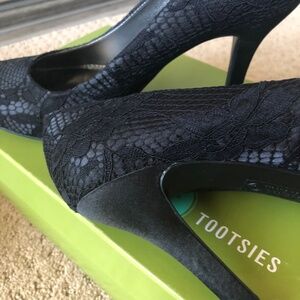 MOOTSIE TOOTSIE GLAM LACE AND SATIN PUMPS, BLACK, SIZE 8-1/2. Like new, worn only twice for a short amount of time.