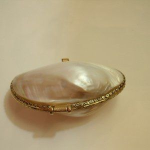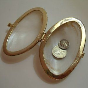 Set of two MOP seashells made into a trinket storage box lined with gold plating trim and they both have latch closures to secure and keep them closed. Very nice to keep jewelry and misc. small objects. The big one measures 4 inches in length, and 3 inches wide and 2 inches in height. The small on measures 2 inches in length, 1.5 inches wide and 1.5 inches in height. They come together as a set. They are handmade. You will see it has its imperfections, but it's very well made. A very unique item. Would make a great gift or you can make it yours today. Gift wrapping is available upon request at no extra charge. Please view all photos provided for your reference before purchasing. All reasonable offers are considered. Any questions please contact me, thank you for stopping by.