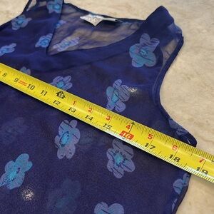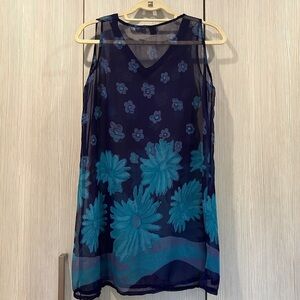 MORE By Lata | Sheer Tunic Top | Swim Cover-Up | Blue Floral | Size