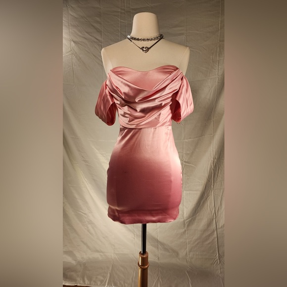 Cute Bubblegum Pink Satin Mini Dress by MORE TO COME.