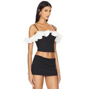 MORE TO COME Corinna Top in Black White Ruffle XS NWT $62