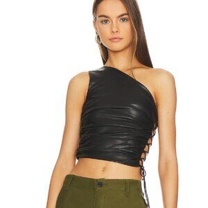 MORE TO COME Kissa One Shoulder Top Black Faux Leather Lace Side REVOLVE Tank