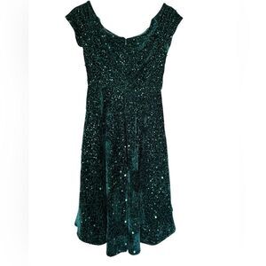 MORGAN & CO Green Velvet Sequined Off-the-Shoulder Fairy Dress 3