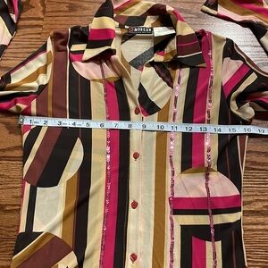 MORGAN DE TOI MYRIANA geometrical sequin stripe button down shirt semi sheer XS