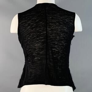 MORGANE LE FAY M Black Wool Blend Felted Floral Rosettes Sleeveless Casual Top