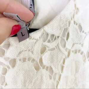MORGAN LEFAY New York Cotton Blend Off White Lace Pockets Midi Dress