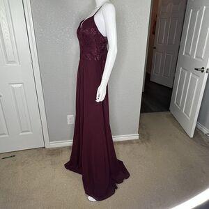 MORI LEE MADELINE GARDNER Size 12 Gown Maxi Dress Lace Chiffon Strappy Burgundy