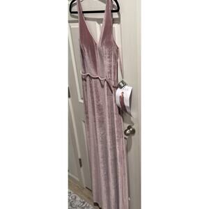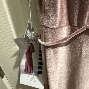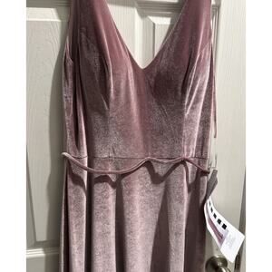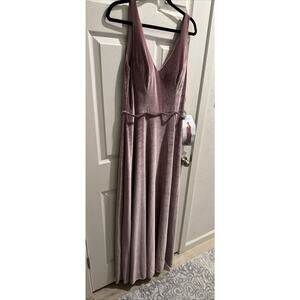 This elegant Morilee bridesmaid dress features a beautiful stretch velvet material and a sleeveless design. The dress is a size 14 and has a lovely pink color that will complement any wedding or formal occasion. The dress is perfect for a prom or a special event, but will need some very minor stitching repairs where shown in photos price discounted to reflect defects. Zipper in new working condition just a few minor popped threads