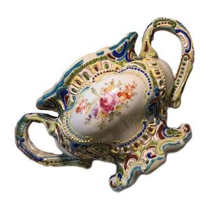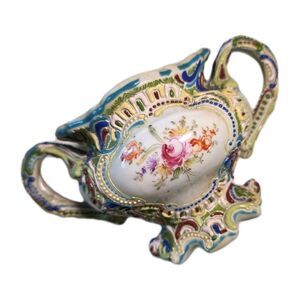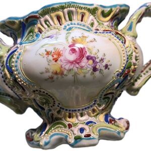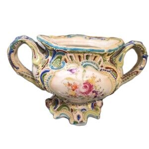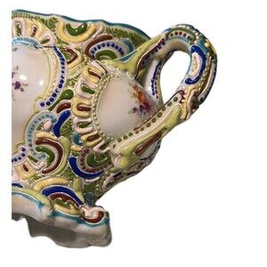 Unmarked SUGAR BOWL Heavy Handpainted Moriage Detail Art Nouveau NO LID. This is GORGEOUS!!! Pop a bouquet inside and enjoy or gove it as a gift! A few tea bags, jewelry, cotton balls...??? Use your imagination. This will be a treasured Keepsake. It's one of my all-time favorite finds. I ship quickly.