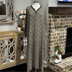 MOROCCAN TOUCH Women’s One Size Embroidered Neck Printed Kaftan Dress