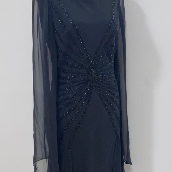 MORRELL MAXIE BLACK EVENING GWON WITH LONG SLEVEES WITH TULLE MERMAID