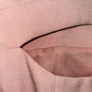 See front for missing seam (barely noticeable- see picture 4) and slight stain (see picture 7). Only noticeable if looking up close for it.