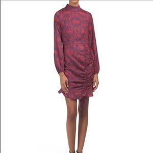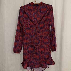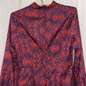MORRISDAY M Red Navy Snake Print Mock Neck Long Sleeve Back Zip Dress