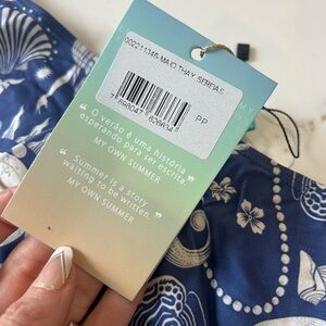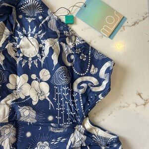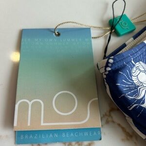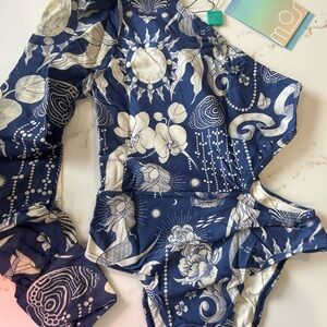 MOS Blue and White Floral one shoulder Long Sleeve Brazilian Swimsuit NWT