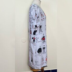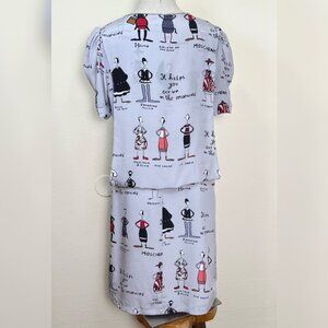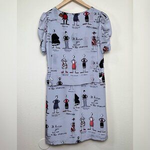 MOSCHINO 100% Silk Gray Cartoon Print Short Sleeve Shift Dress Size 4