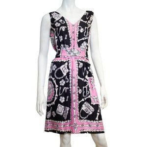 MOSCHINO Black and Pink V Neck Bones Prehistoric Print Silk Dress Cheap and Chic