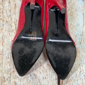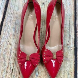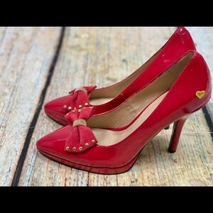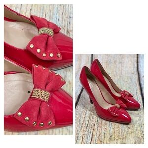 MOSCHINO EUC Red Patent Leather Studded Bow Pumps
