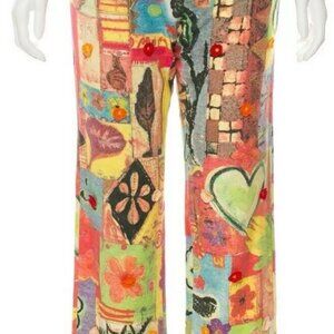 MOSCHINO Italian 42 Jeans Linen Pants Crochet Detail Multicolor M USA Sz 8 30