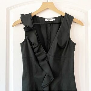 MOSCHINO JEANS Donna Black Ruffle Sleeveless Mini Dress Ribbed Textured