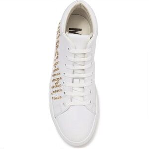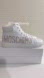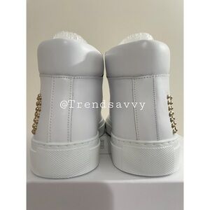MOSCHINO Leather High Top Sneaker Logo Stud Lace Up White Shoes 8 NWT AUTHENTIC