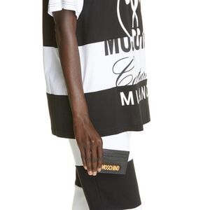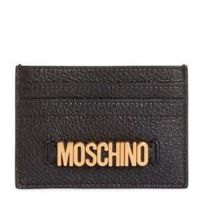 MOSCHINO Logo Leather Card Case, Designer Italian Luxury Wallet, Black Gold, NWT