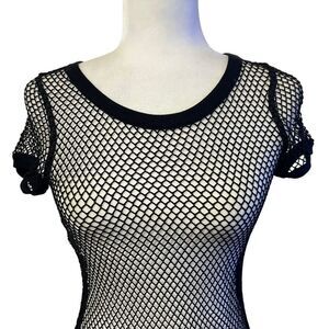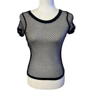 MOSCHINO NWT !! Iconic Open-Knit Short-Sleeve Mesh Top BOUTIQUE COLLECTION Black Size Small / 6