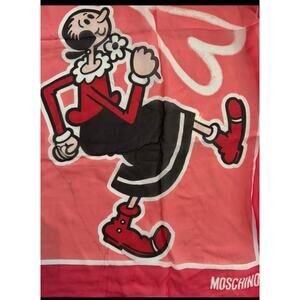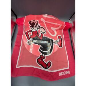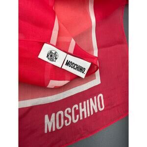 Worn once MOSCHINO Olive Oil Theme Silk Luxury Scarf Red 20” X 64” Vintage