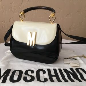 ❤️ Vintage Authentic Moschino Borse Redwall Italy Tricolor(Ivory/Black/Brown) Museum Quality Polished Leather Bag including removable & adjustable shoulder strap with original Dust Bag and Moschino brand tags.