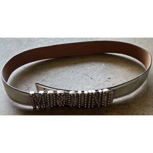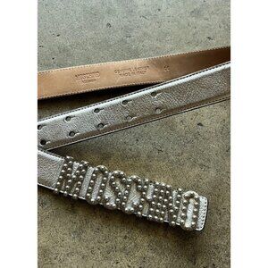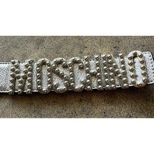 MOSCHINO Silver Embellished Logo Lettering Belt Leather Women’s Sz 44 Italy Made