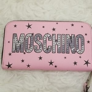 💕MOSCHINO💕 Space Ship Bear Zip Around Wallet Pink NWT 100% Leather