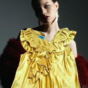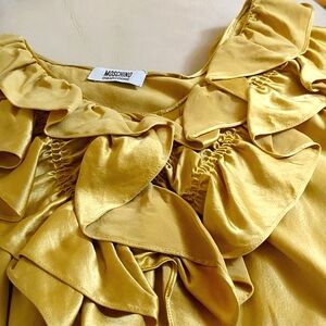 Vintage luxury satin sleeveless draped Moschino blouse.