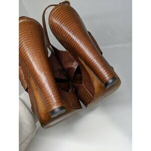 MOSCHINO Women'ts Vtg BROWN LEATHER SLINGBACK PLATFORM HEELS Size 39.5