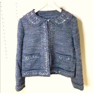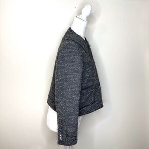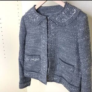 MOSHINO Vintage Tweed Sequin Trimmed Grey Silver Boucle Blazer Jacket Si…