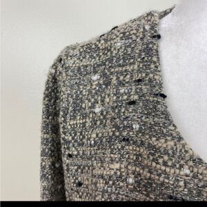 MOSHINO Vintage Tweed, Sequin Trimmed Grey, Silver Boucle Blazer Jacket. Needs some TLC but, Gorgeous. A little Dry Cleaning and you are all set. Retailed around 900. Hook and eye closure collar less neckline.