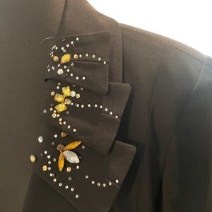 MOSHITA COUTURE Women's Beaded Embellished Black Suit Blazer—SZ.20