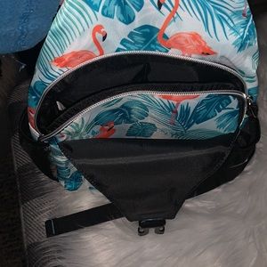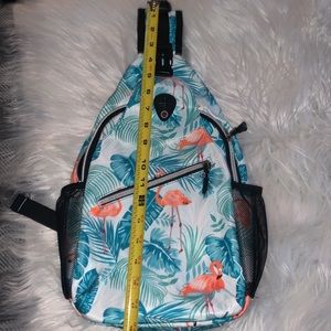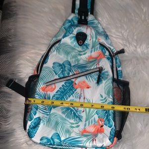 MOSISO mini sling backpack/Sm Hiking Daypack/Outdoor Sports Bag, Flamingo Pattern. Side meshes , zipper closure, open compartment. In good condition plz plz see all pictures before purchasing any questions plz ask (preowned) 👛(#13)