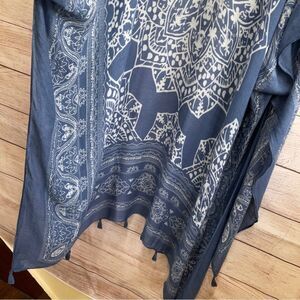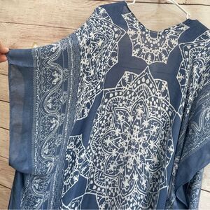 EXCELLENT CONDITION MOSS ROSE BANDANA PRINT DUSTER IN BLUE ONE SIZE PIT TO PIT 38 INCHES SHOULDER TO HEM 42 INCHES
