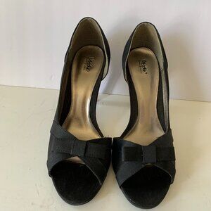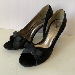 MOSSIMO BLACK PEEP TOE PUMPS WITH BOW DETAILS HEEL SHOES SIZE 9M