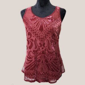 MOSSIMO Burgundy Burnout Velvet Tank Top V Neck Sleeveless Blouse Shirt