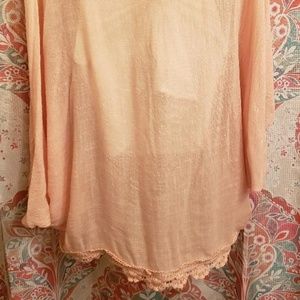 Pretty Light Peach Cardigan with a Crochet trim. NO STAINS. NO HOLES. NO SNAGS. ONE SIZE FITS ALL!!