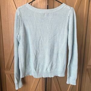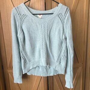 MOSSIMO Cable Knit Linen Blend Sweater Womens L Heathered Green Blue