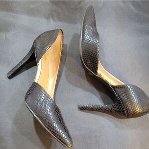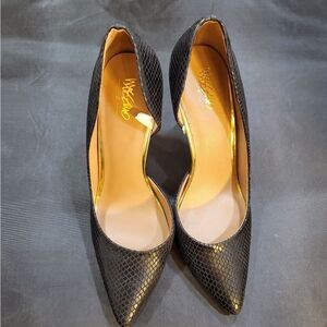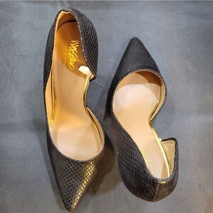 MOSSIMO FAUX SNAKESKIN POINTED TOE D'ORSAY SLIP-ON PUMP SIZE 71/2 COLOR BLACK MADE WITH ALL MAN-MADE MATERIALS LINING BALANCE MAN MADE HEEL HEIGHT MEASUREMENTS APPROX 3"INCHES THIS ITEMS PRE-OWNED WITH ONLY LIGHT SIGNS OF WEAR IF ANY CHECK THE PICTURES