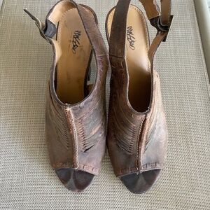 Mossimo Brown Distressed Leather Sandals Heels, Sz 8.. very good condition- some toe marks but can't tell while wearing.