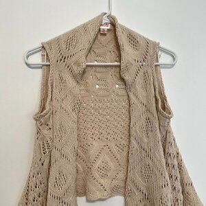 MOSSIMO SUPPLY CO Cream Beige Knit Crochet Open Cotton Sleeveless Sweater / Vest