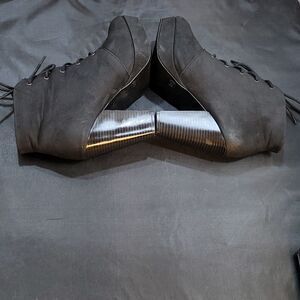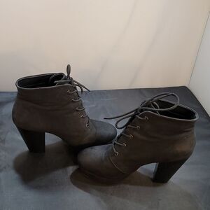 MOSSIMO SUPPLY CO WOMEN'S SUEDE HIGH HEEL ANKLE BOOTS SIZE 81/2 COLOR BLACK Been lookin' for some fab new bootie The mossimo supply Suede High Heel Ankle Boots are within your grasp! These chic suede boots are burnished for a smooth look at the heel and rounded toe, with round black shoestrings lacing up the front. 1" inches platform stacked wooden heel heel Height measurements apron 4"inched round toe is a breeze to walk in thanks to a toe platform that are for Leather upper. Balance man made. measures just under an inch. Lightly cushioned insole. Rubber sole has non-skid markings. THIS ITEMS IS PRE-OWNED EXCELLENT CONDITION WITH ONLY LIGHT SIGNS OF WEAR IF ANY CHECK THE PICTURES